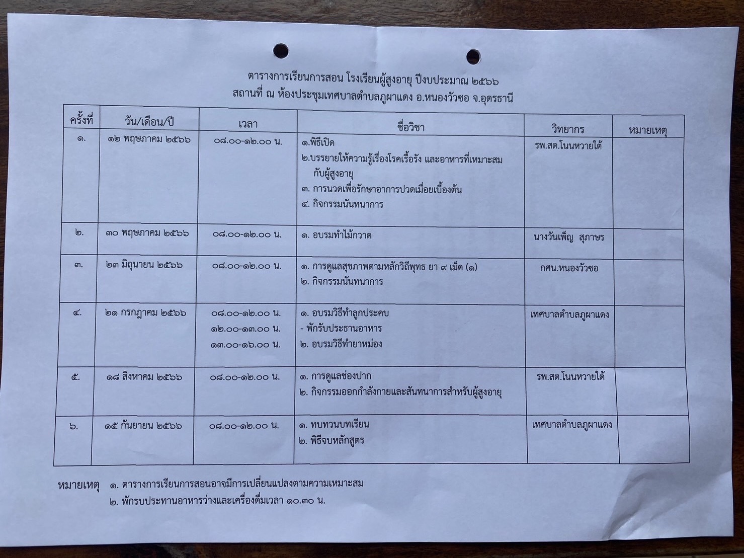 ประกาศเทศบาลตำบลภูผาแดง เรื่อง โรงเรียนผู้สูงอายุ