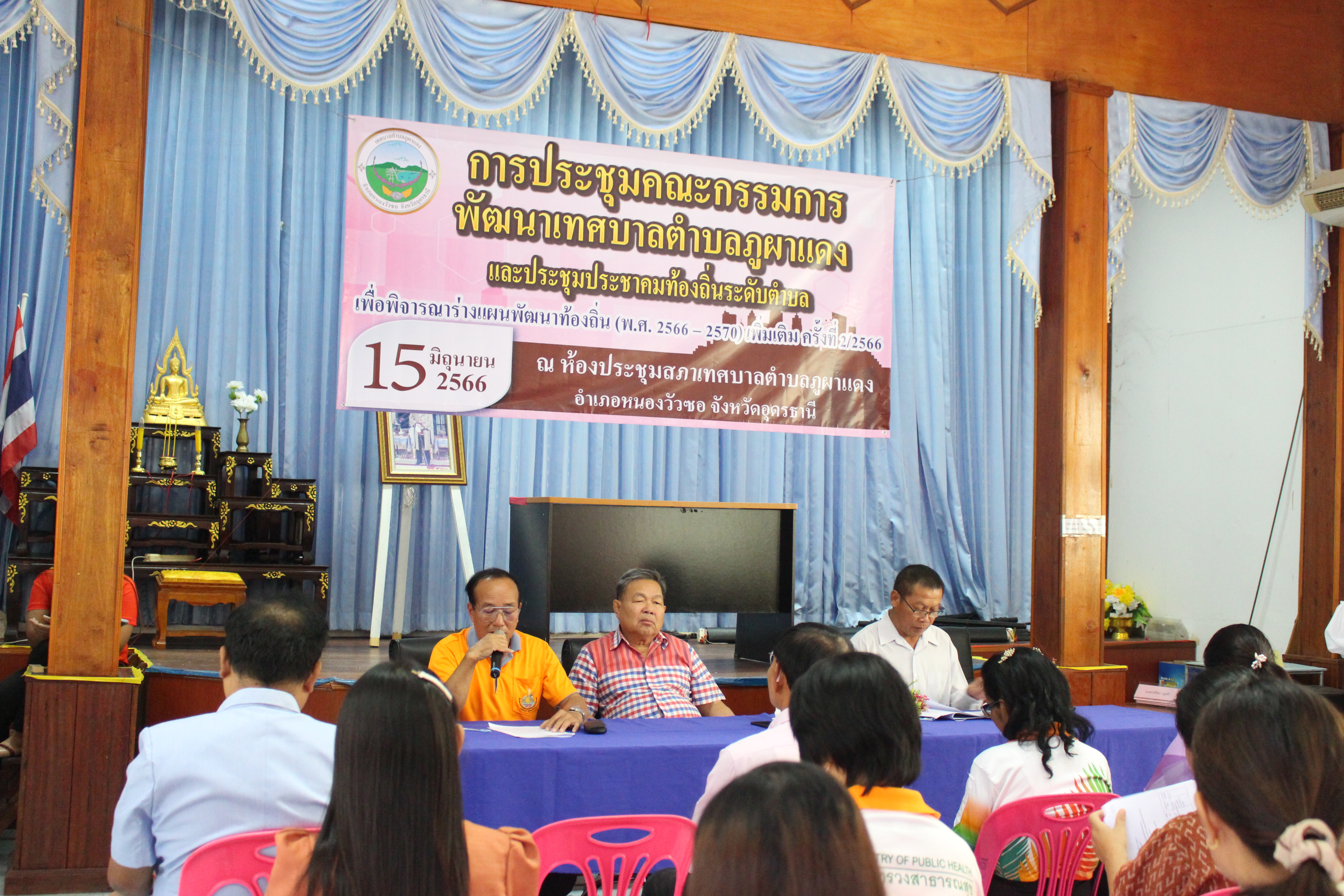 การประชุมคณะกรรมการพัฒนาเทศบาลตำบลภูผาแดงและประชุมประชาคมท้องถิ่นระดับตำบล เพื่อพิจารณาร่างแผนพัฒนาท้องถิ่น (พ.ศ.๒๕๖๖-๒๕๗๐) เพิ่มเติมครั้งที่๒/๒๕๖๖